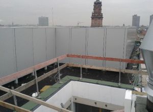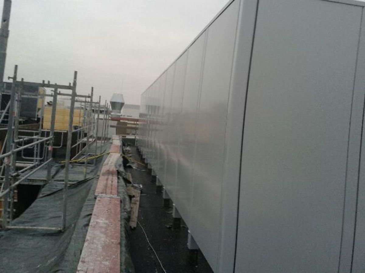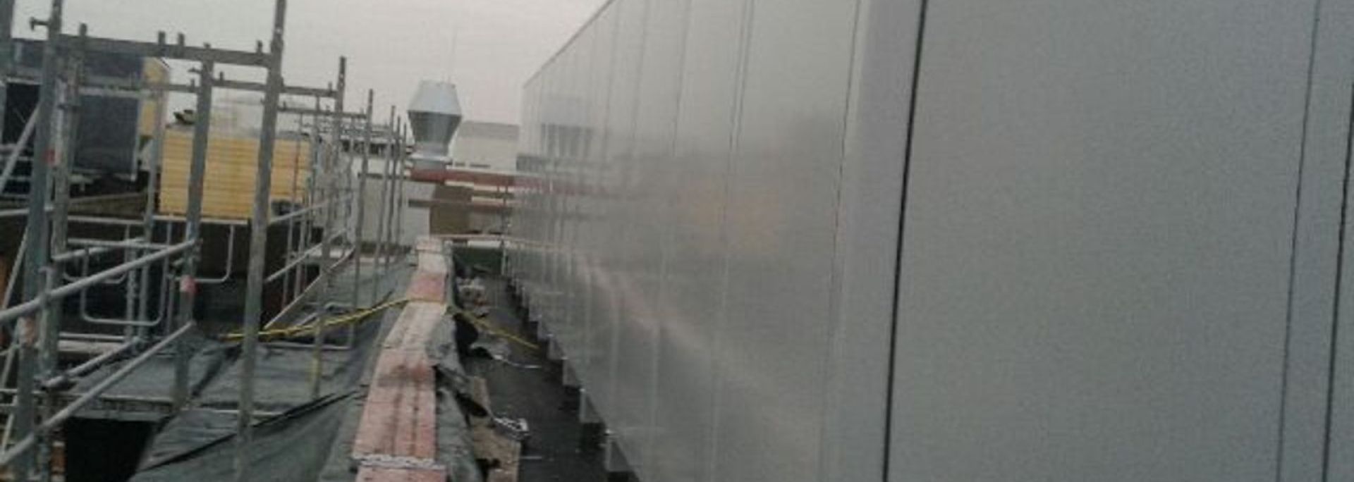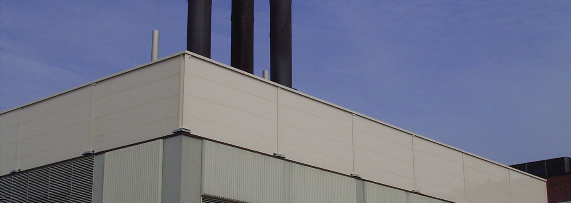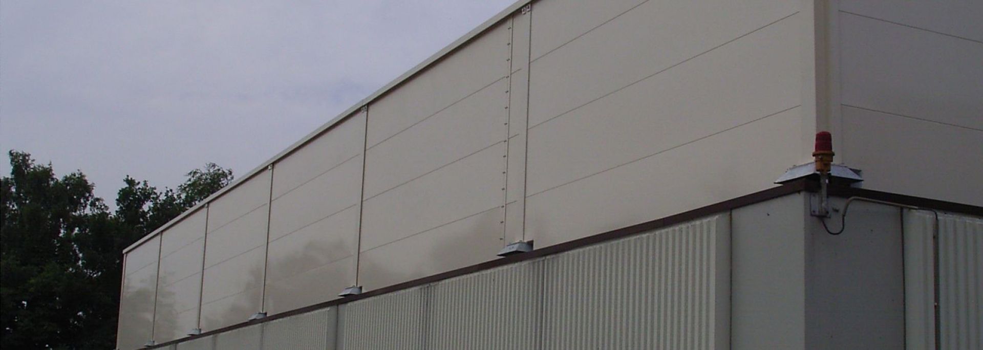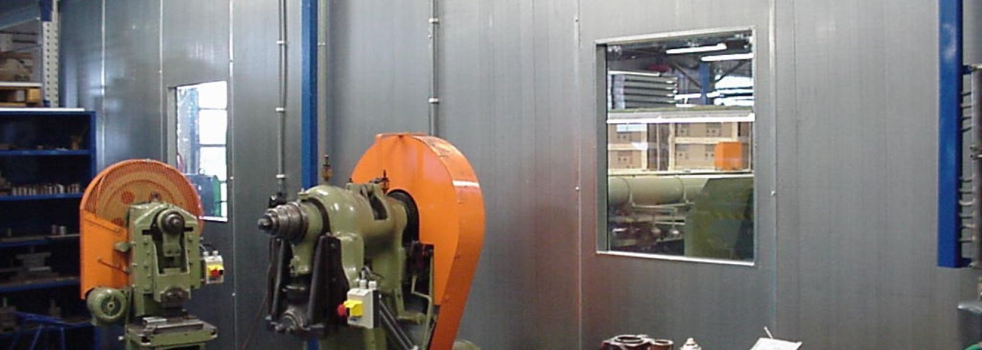 Schalldämmende Schallschutzwände dienen der Abtrennung oder Abschirmung von einzelnen, lauten Betriebsbereichen, wie z.B. Kompressoren, Kühlanlagen oder einzelnen Werkstattbereichen.